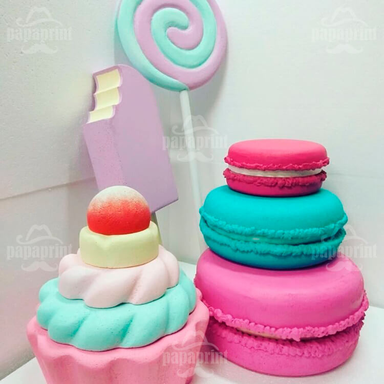 Як оригінальний декор з пінопласту або нестандартну рекламу дуже популярні 3D композиції — об’ємні фігури з пінопласту, що імітують різні предмети у значно збільшеному розмірі, муляжі, моделі. Це можуть бути збільшені муляжі, наприклад, продуктів, овочів, величезний стаканчик морозива або ж, навпаки, зменшені копії будівель, веж, літаків, скульптур, пам’яток архітектури.