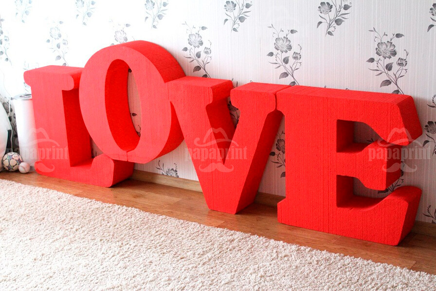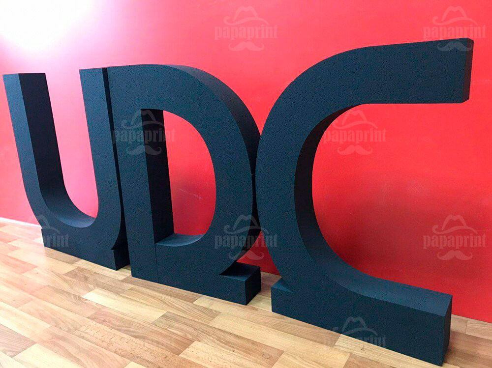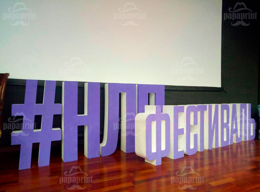 Найпоширенішим виробом з пінопласту є, безсумнівно, об’ємні літери! Завдяки різноманіттю можливих форм, кольорів, покриттів об’ємні літери з пінопласту, написи, логотипи виглядають дуже ефектно та створюють необхідний запам’ятовуючий образ компанії або неповторну атмосферу заходу. Окремі знаки, літери з пінопласту або ж об’ємні суцільні написи стають привабливою деталлю інтер’єру офісу, холу готелю, ресторану, вітрини та фасаду магазину, а також яскравим акцентом в оформленні різних виставок, конференцій, свят.