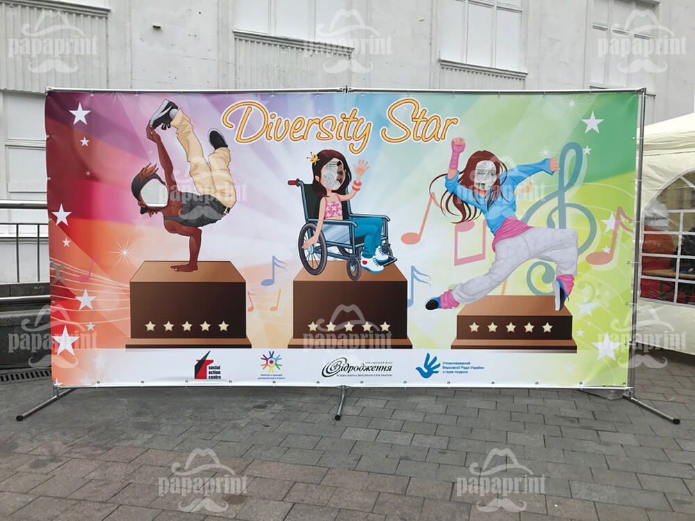 На конструкцію також можна закріпити об’ємний логотип компанії, нанести фотодрук з рекламним гаслом або в текстовому форматі перелічити переваги рекламованого товару.