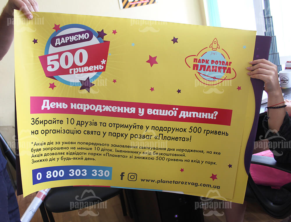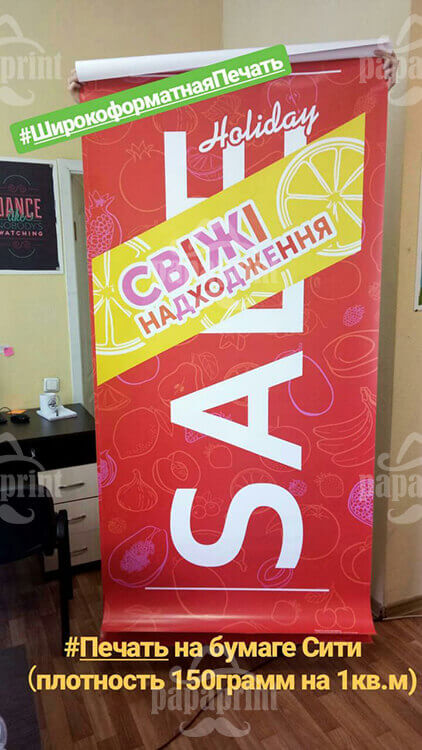 На сьогоднішній день широкоформатний друк на папері – один з найбільш затребуваних і бюджетних способів виробництва зовнішньої реклами. Щодня, бачачи на вулицях нашого міста яскраві баннери та рекламні плакати, які привертають нашу увагу, ми не можемо залишитися байдужими до їх закликів про грандіозні великі знижки або супервигідні «унікальні» пропозиції і … купуємо. Навіть не усвідомлюючи, що цей красивий величезний банер, який ви бачите поруч з офісом, змусив вас придбати чергову модель ноутбука.