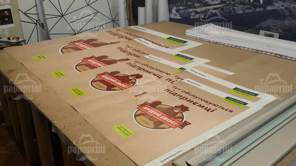 Компанія «Папапрінт» працює в сфері широкоформатного друку багато років, зарекомендувавши себе як партнер, якому варто довіряти. Наші плотери здатні швидко друкувати рекламні вироби абсолютно будь-якого розміру – від 1 до 100 кв.м. Застосування сучасного обладнання для друку на самоклейному папері великого формату виключає проблеми зі швами та нестиковки. Нанесені на кілька полотен картинки виглядають як єдине ціле.